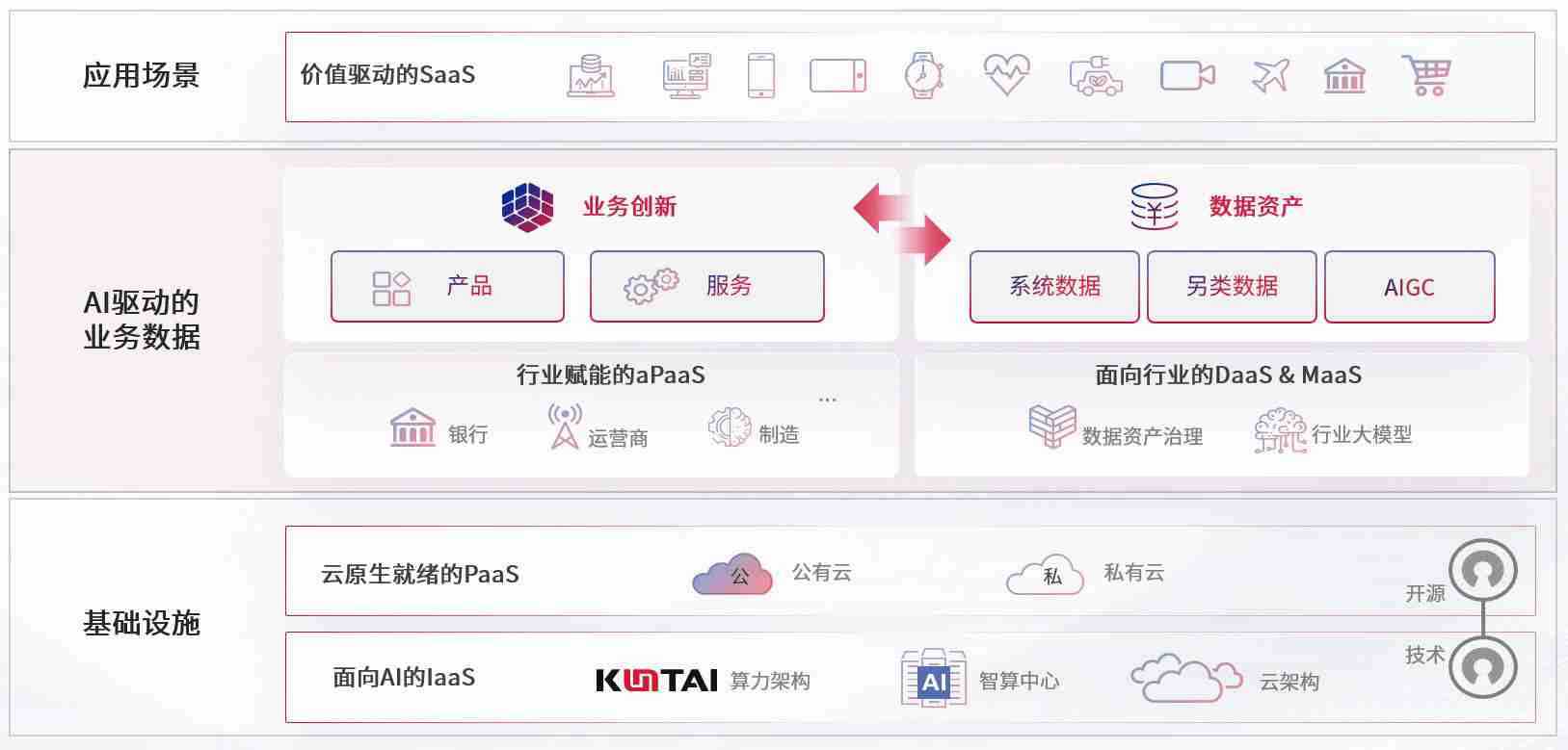 数字时代,,围绕企业数字化转型的关键要素,,J9.COM数码开创性的提出数云融合战略和技术体系框架,,着力在云原生、、数字原生、、、、AI原生和信创产业上架构产品和服务能力,,,为处在不同数字化转型阶段的快消零售、、、汽车、、金融、、、、医疗、、、、政企、、教育、、运营商等行业客户提供泛在的敏捷IT能力和融合的数据驱动能力,,构建跨界融合创新的数字业务场景和新业务模式,,,助力企业级客户建立面向未来的核心能力和竞争优势,,,全面推动社会的数字化、、智能化转型升级。。。。